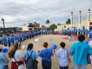 La jornada inició con una caminata que recorrió el malecón y concluyó en el Hemiciclo de los Niños Héroes. En este punto, la docente de deporte Valencia Inés García Martínez dirigió una activación física, promoviendo la importancia del ejercicio y posteriormente, los asistentes formaron un Círculo Azul, que es el emblema global del Día Mundial de la Diabetes.