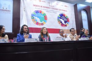 A su vez, la presidenta de la Comisión Especial para el Seguimiento a la Agenda 2030 y los Objetivos de Desarrollo Sostenible, diputada Tania María Cruz Mejía, expuso el interés de esta instancia legislativa en que las próximas autoridades “conozcan con exactitud el estado de avance de sus municipios” y “dónde están las mayores brechas en aspectos cruciales que buscan garantizar vivienda digna, salud, educación y transporte público eficiente”, pues “serán ustedes quienes gestionarán la planeación urbana, el uso racional de los recursos y la resiliencia frente al Cambio Climático”.