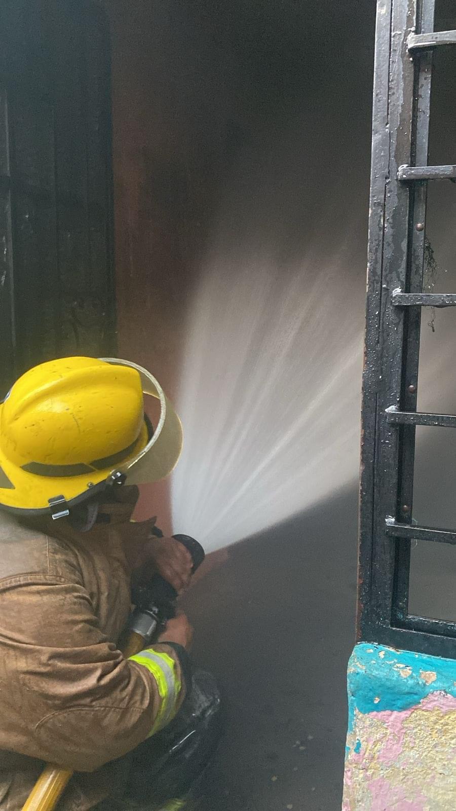 Se informó que el origen del fuego, fue un corto circuito de un ventilador que se dejó conectado a la corriente eléctrica, sin que se reportaran personas lesionadas.