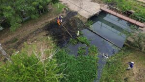 Las acciones incluyeron el retiro de lirio acuático y grandes volúmenes de residuos sólidos como plástico, unicel, latas, bolsas e incluso muebles abandonados, lo que evidenció años de acumulación en estos espacios. Asimismo, se eliminaron obstrucciones para restablecer el flujo adecuado del agua hacia el río, conforme al funcionamiento del sistema hidráulico.