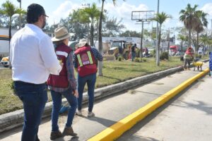 En el sitio, Rosaldo García constató las labores ejecutadas por la Dirección de Obras Públicas, a través del área de Infraestructura Urbana, que incluyen la reconstrucción del pavimento afectado, el pintado de guarniciones, así como acciones de barrido, limpieza general y retiro de maleza, realizadas por los departamentos de Ornatos y Limpia Pública con apoyo de maquinaria pesada.
