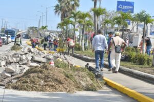 Durante la jornada del sábado, el alcalde acudió a la carretera Transístmica, a la altura del puente Calzadas —una de las principales entradas a Coatzacoalcos—, donde supervisó los trabajos de rehabilitación que se realizan desde ese punto hasta el puente Caracol.