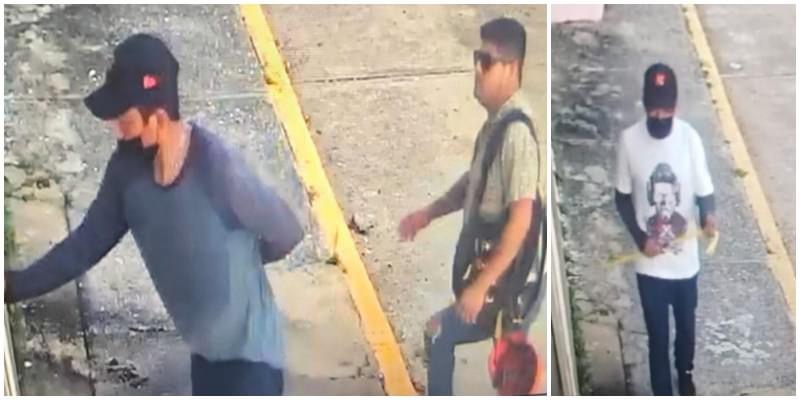 Los sujetos quedaron video grabados en las cámaras de vigilancia, uno de ellos vestía una camisa con motivos verdes y claros, así como lentes sol, mochila y traía consigo un casco naranja de obrero.