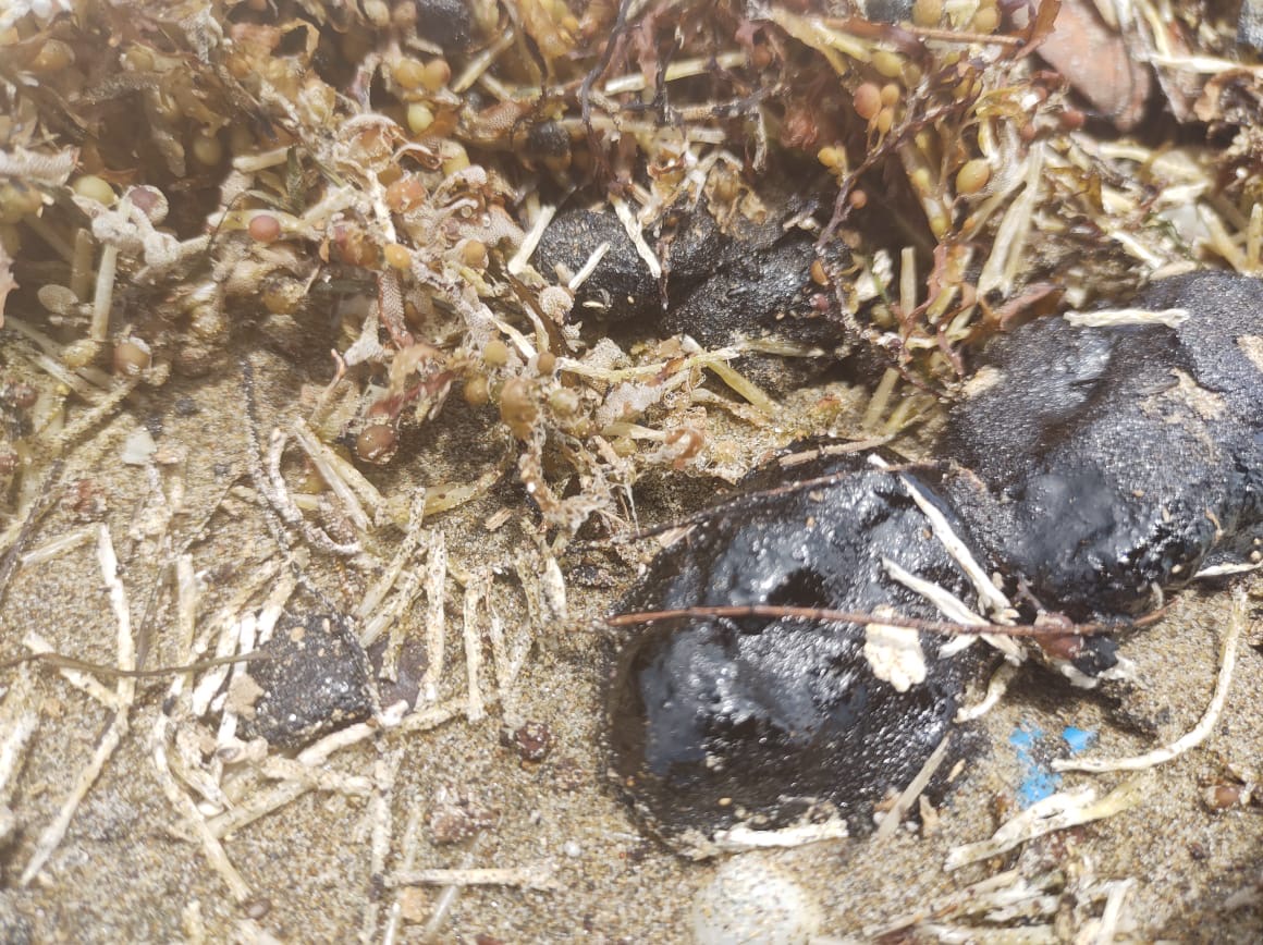 A lo largo de la franja costera se observa las manchas del hidrocarburo en la arena y playas.