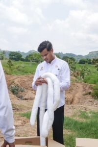 “Por instrucciones de la gobernadora la Ing. Rocío Nahle, nos encontramos en gira de trabajo por el sur de Veracruz, personal de la PMA verifica los trabajos de atención y contención de un derrame de hidrocarburo de un ducto de PEMEX”, posteó el procurador.