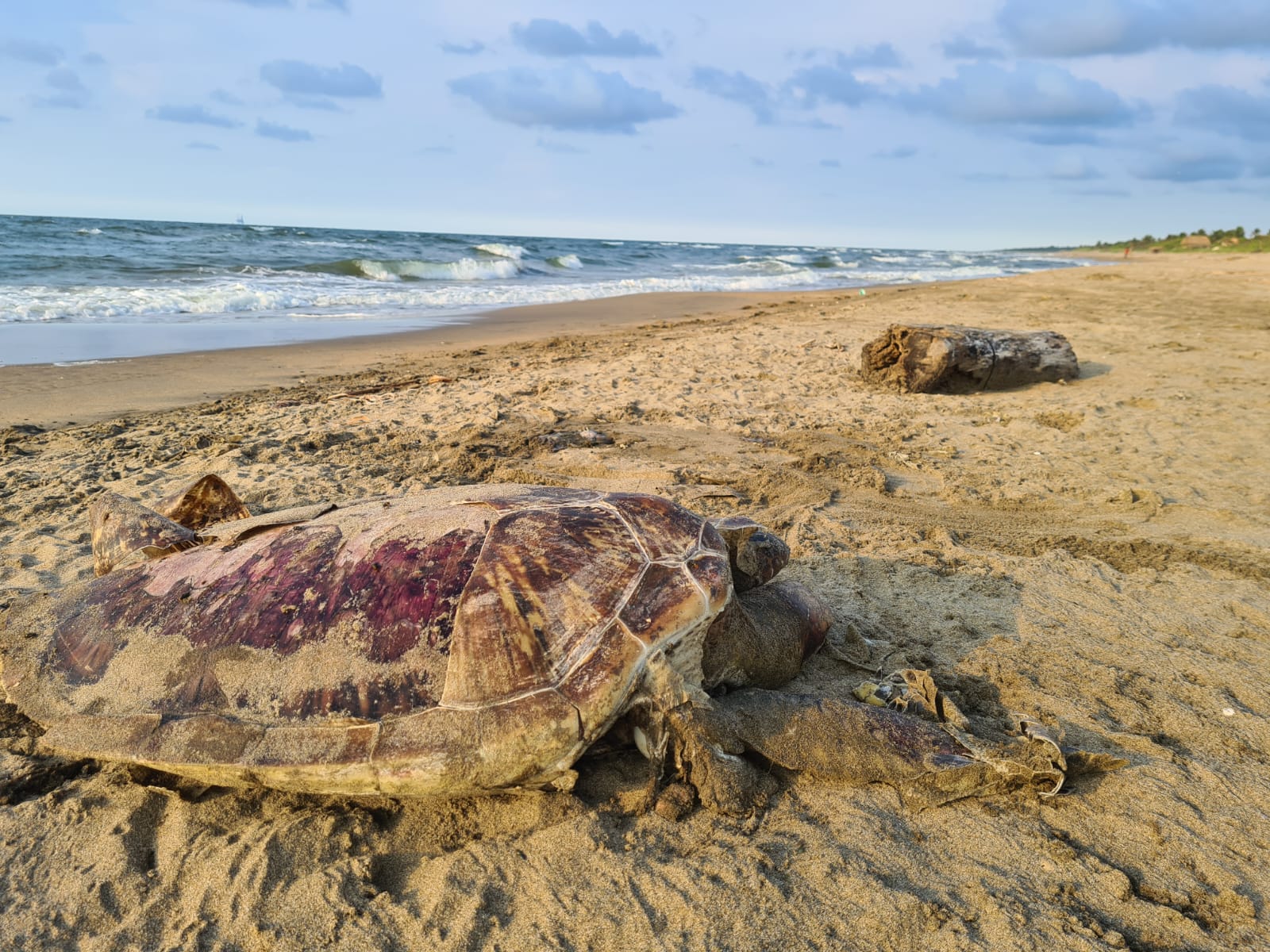 Entre los residuos del crudo petrificado, apareció muerta una tortuga marina de la especie Carey – con alrededor de 8 años de edad y una longitud de más de un metro-al parecer fue intoxicada por esta oleada de contaminación derivada del derrame de hidrocarburo.