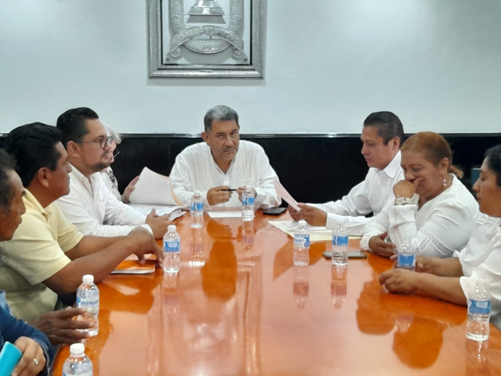El presidente municipal llegó al Ayuntamiento de Coatzacoalcos con su cabildo y un grupo de ejidatarios para sostener un diálogo con el alcalde Amado Cruz Malpica en donde le presentaron  una serie de peticiones, entre ellas, la construcción de un tanque de almacenamiento de 250 mil litros con una tubería que suministre el agua a los pobladores de la sierra.