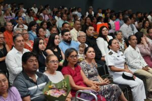 El acto, desarrollado en el Centro de Convenciones, reunió a cientos de asistentes, destacando a la Síndica Única, Ana Bertha Hernández Aguilar, quien llegó en representación del alcalde Amado Jesús Cruz Malpica; el director del DIF Municipal, Elit Seba Juárez; integrantes del Cabildo, representantes sociales y ciudadanía en general.