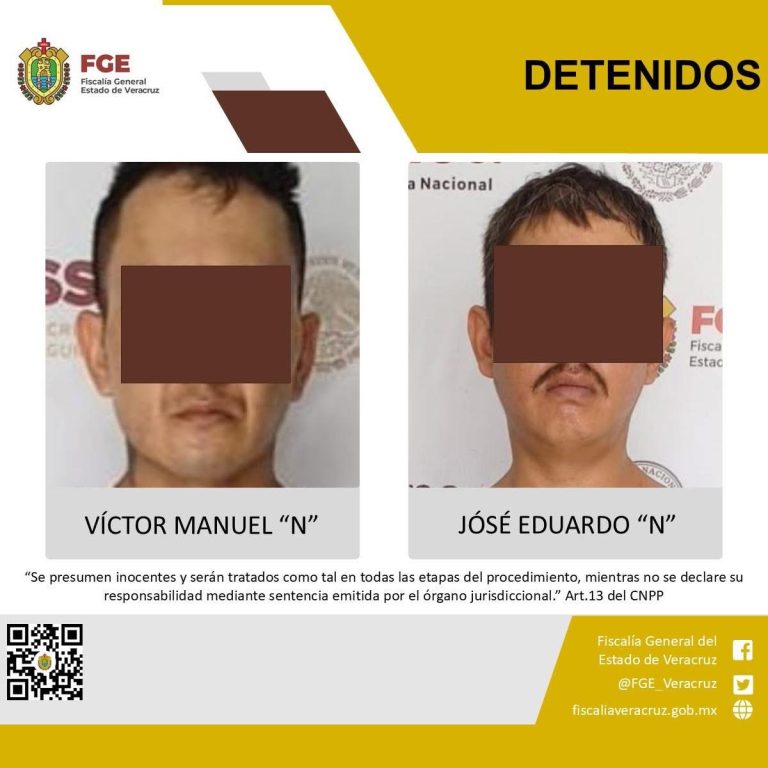 La Fiscalía General del Estado informa que, como resultado de labores de investigación de gabinete y campo, las fuerzas de seguridad en coordinación: Secretaría de la Defensa Nacional, Secretaría de Marina, Secretaría de Seguridad Pública y Policía Ministerial, llevaron a cabo un operativo en este municipio, en el cual fueron detenidos Víctor Manuel “N” y José Eduardo “N”, presuntos integrantes de un grupo delincuencial, quienes son investigados por su posible participación en la privación de la libertad de la víctima identificada con las iniciales I.H.C., docente jubilada y taxista, reportada como no localizada el pasado 18 de julio y cuyo cuerpo sin vida fue localizado el día de ayer.
