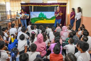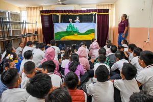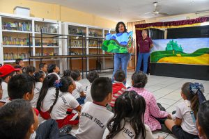 “Cada muñeco que ven ustedes se hacen en las bibliotecas, con el personal, ellos son muy creativos y los preparan con mucho cariño para llevarlas a todas las escuelas. Agradezco la invitación de la directora para estar aquí, esperamos volver con una obra de teatro”.