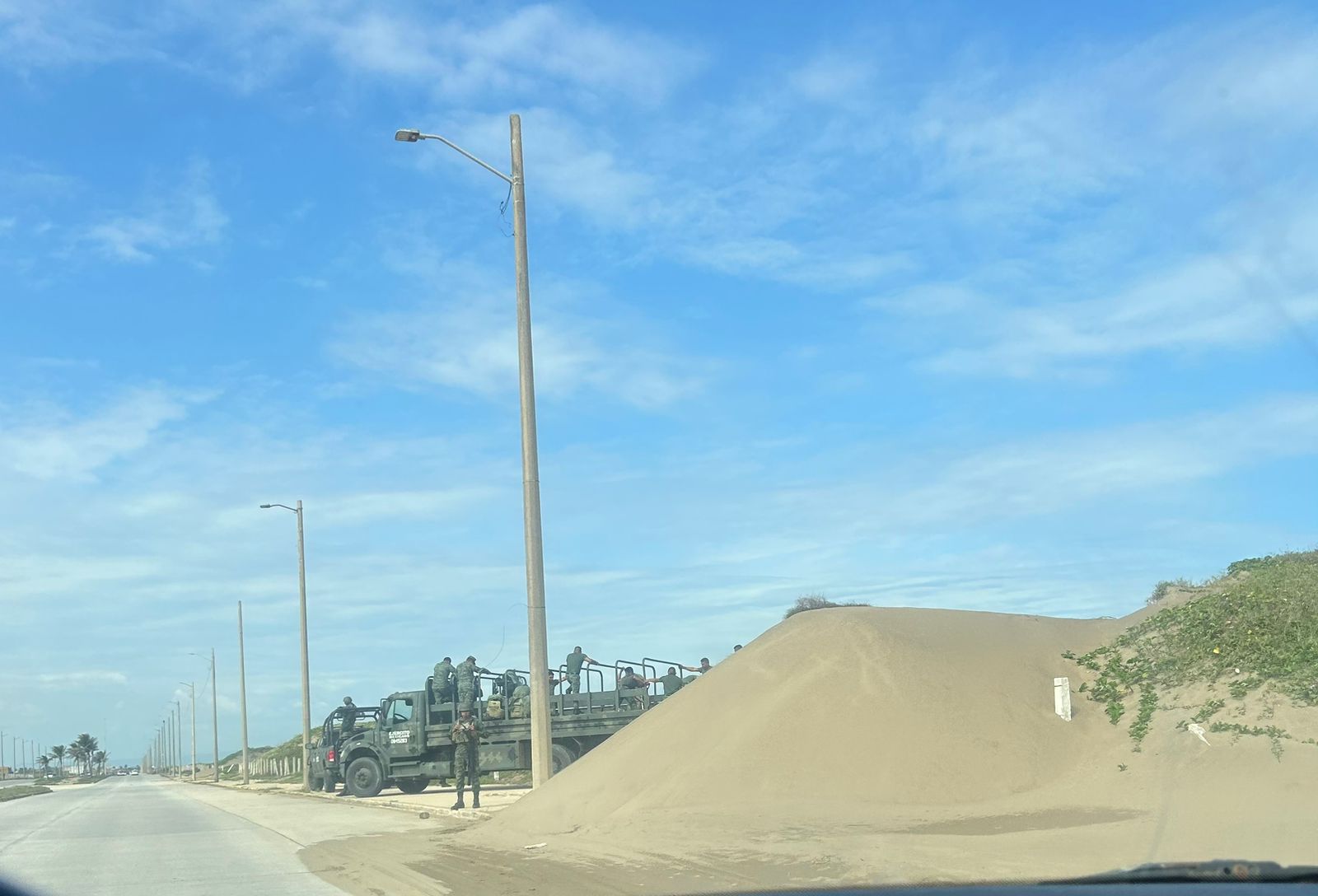 Al menos  diez elementos de la Secretaría de la Defensa Nacional (SEDENA) a bordo de dos unidades realizaron el saqueo de arena de las dunas en el malecón de Coatzacoalcos.