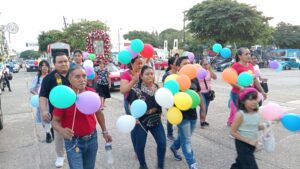 La procesión estuvo marcada por autos adornados con globos y música, creando un ambiente de júbilo mientras los católicos coreaban cantos guadalupanos y rezos en honor a la Emperatriz de América.