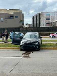 Una carambola, donde se vieron involucrados tres vehículos, dejó como saldo una elemento del Instituto de la Policía Auxiliar (IPAX) lesionada la mañana del lunes. El percance ocurrió sobre el Malecón Costero, a la altura del hotel Fiesta Inn.
