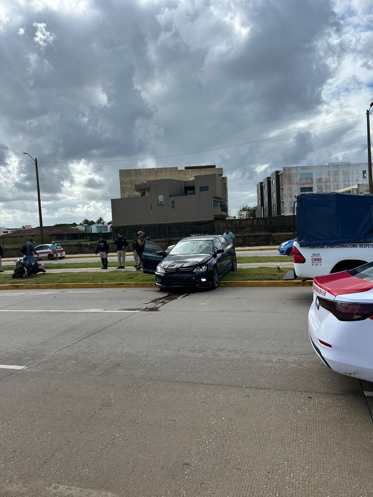 El incidente se registró cuando las tres unidades viajaban en la misma dirección, de oriente a poniente. El automóvil particular Volkswagen Jetta color negro placas YCP-471-B, del estado de Veracruz impactó por alcance a la motociclista, esta maniobra provocó una doble colisión contra el taxi número económico 1743, con placas A-958-XFD.