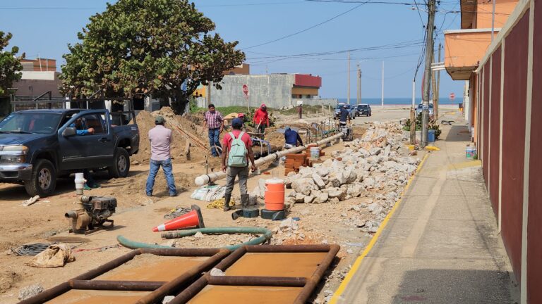 En la avenida Platón Sánchez se realizan trabajos de rehabilitación del sistema de drenaje sanitario, acciones que beneficiarán de manera directa a más de 400 habitantes, mejorando la funcionalidad del sistema y reduciendo la contaminación de los cuerpos de agua.