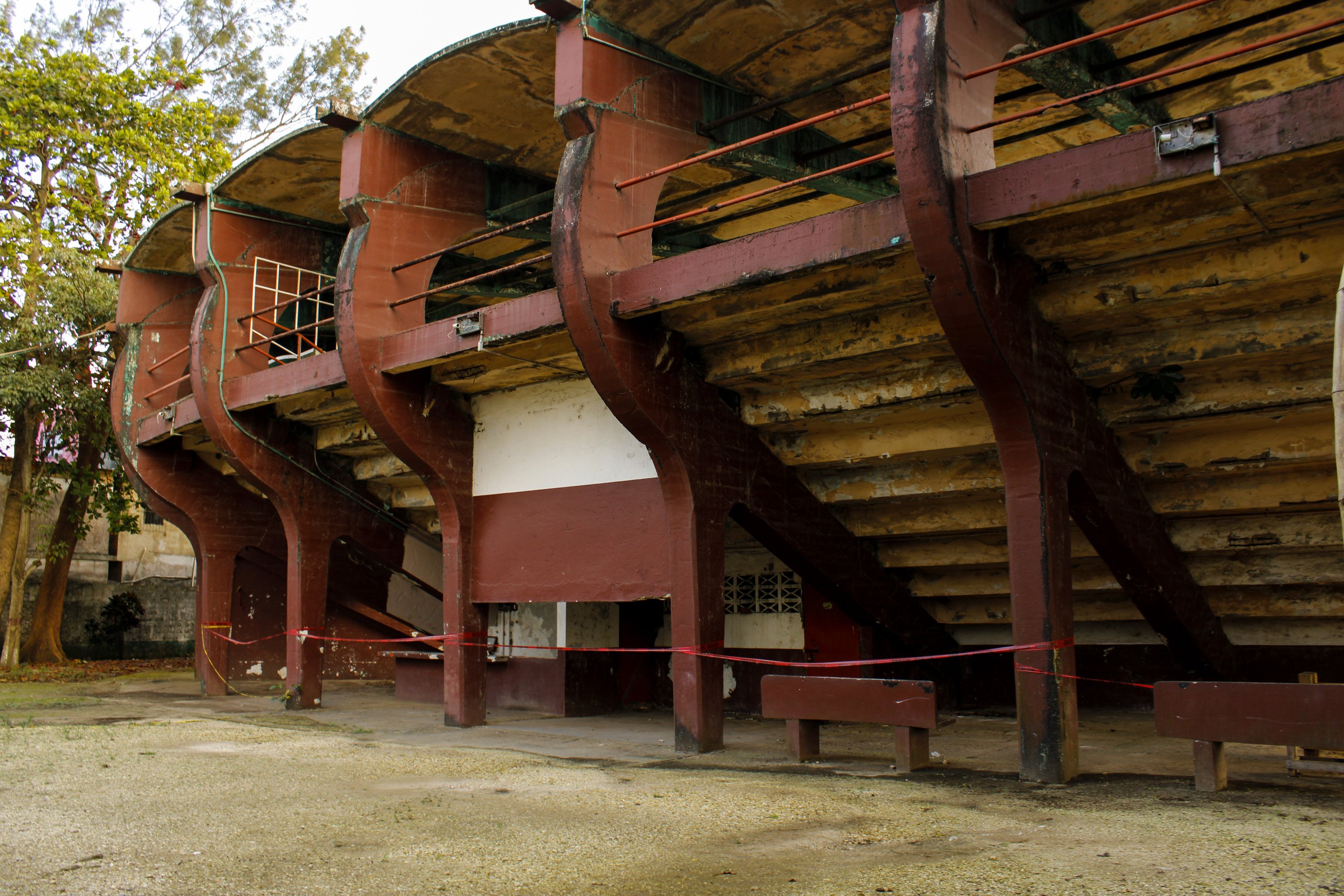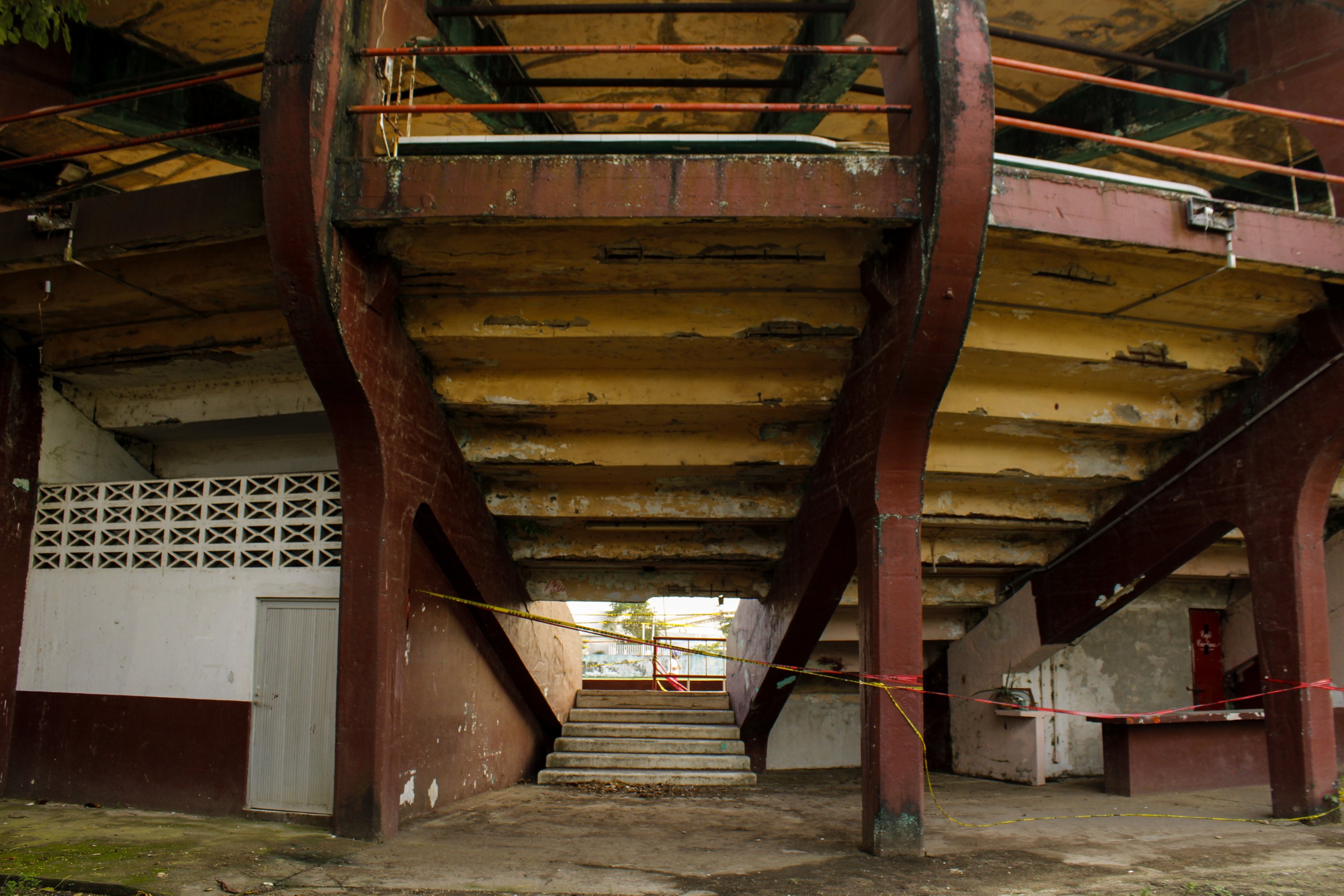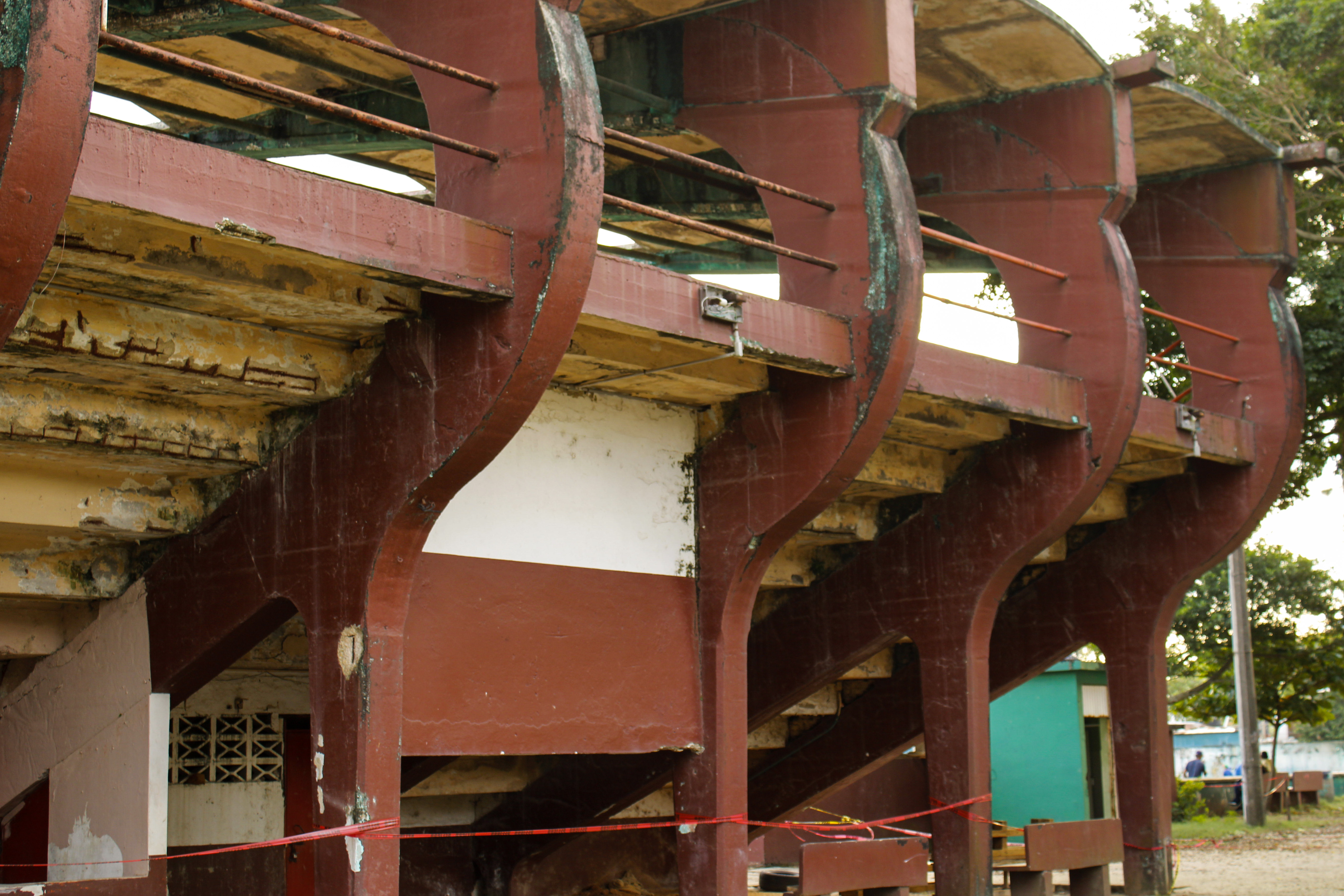 Varillas expuestas y con cuarteaduras es como lucen las gradas y el techo del campo deportivo “Presidente Miguel Alemán”, en Coatzacoalcos.