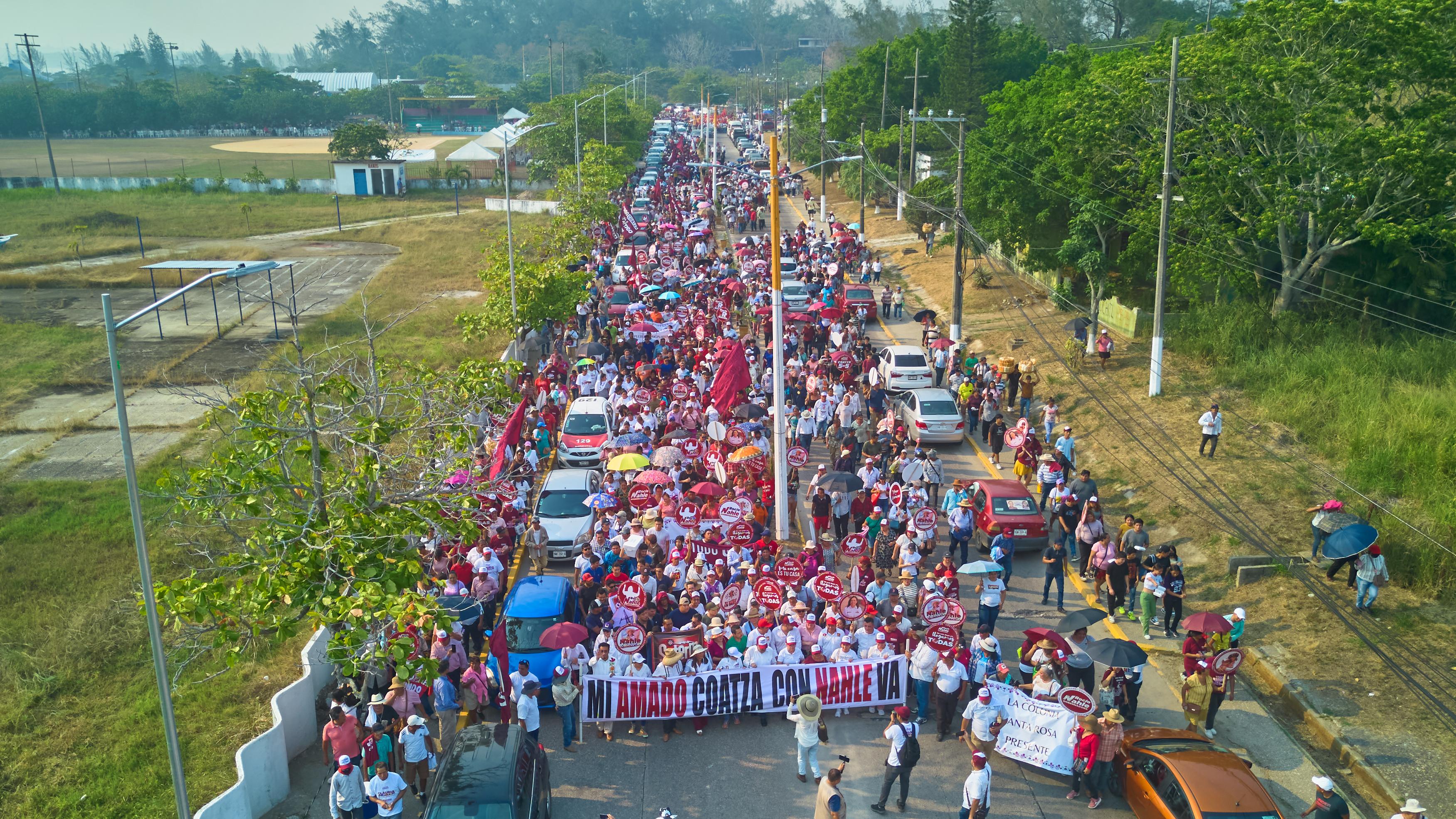 Junto a Amado Cruz, simpatizantes y militantes de Coatzacoalcos tiñeron de guinda Nanchital y dejaron en claro que este 2 de junio asistirán a las urnas y votarán 5 de 5 para que Veracruz siga siendo gobernado por Morena seis años más.
