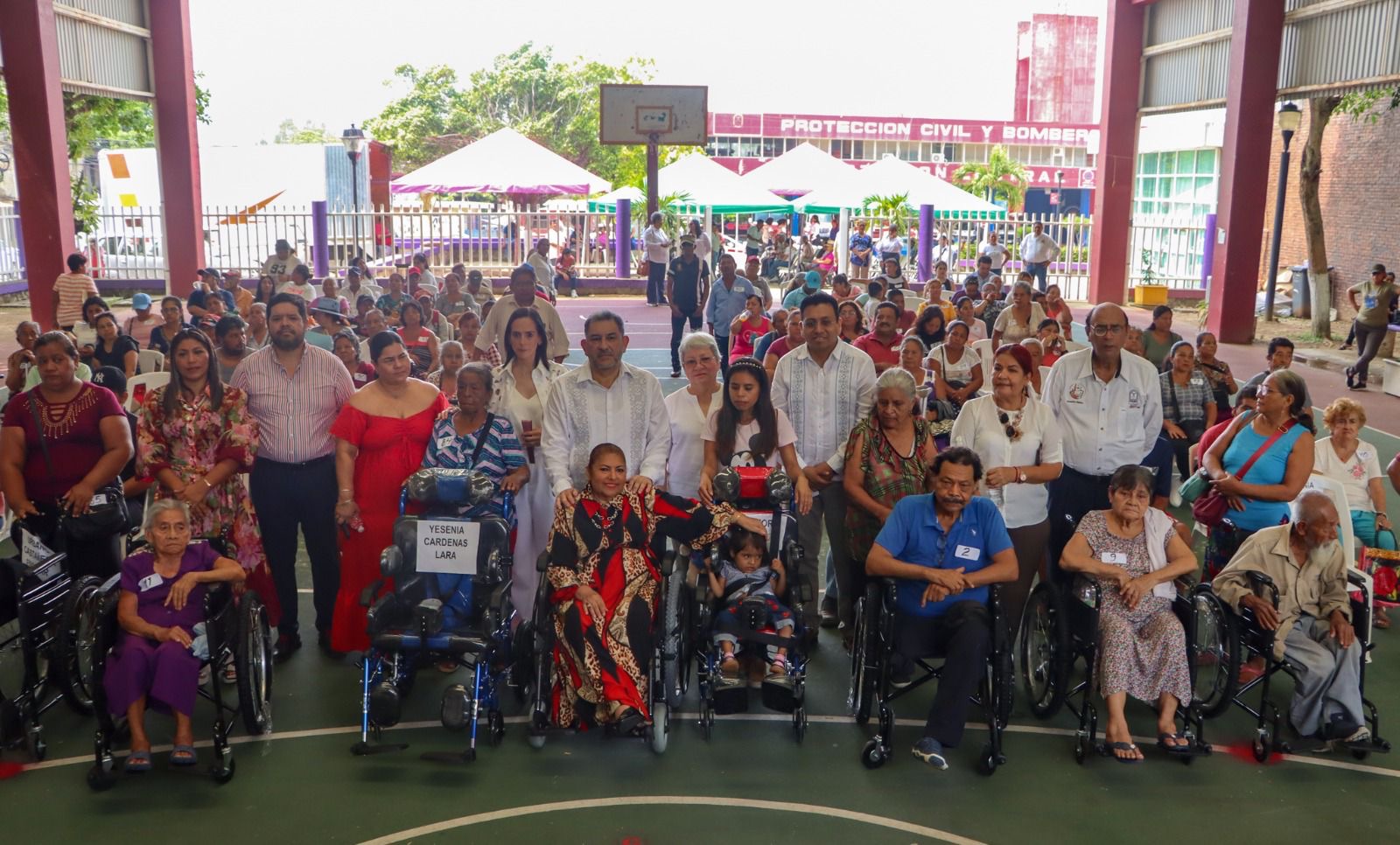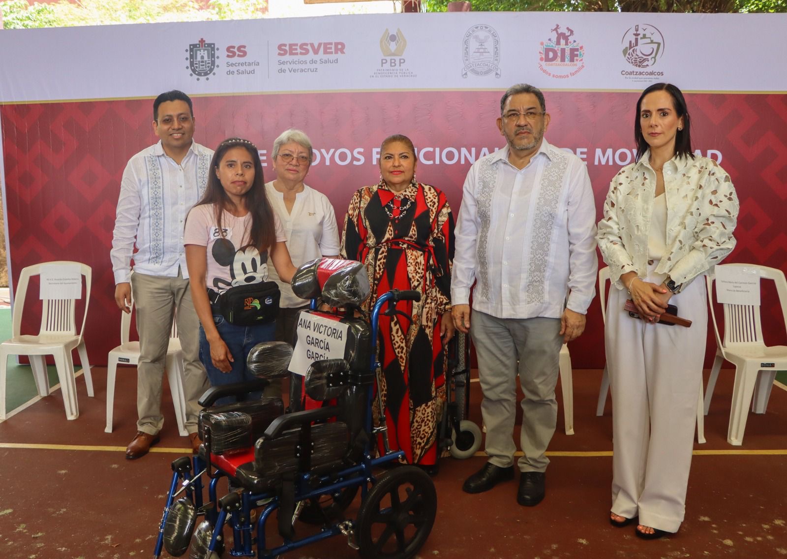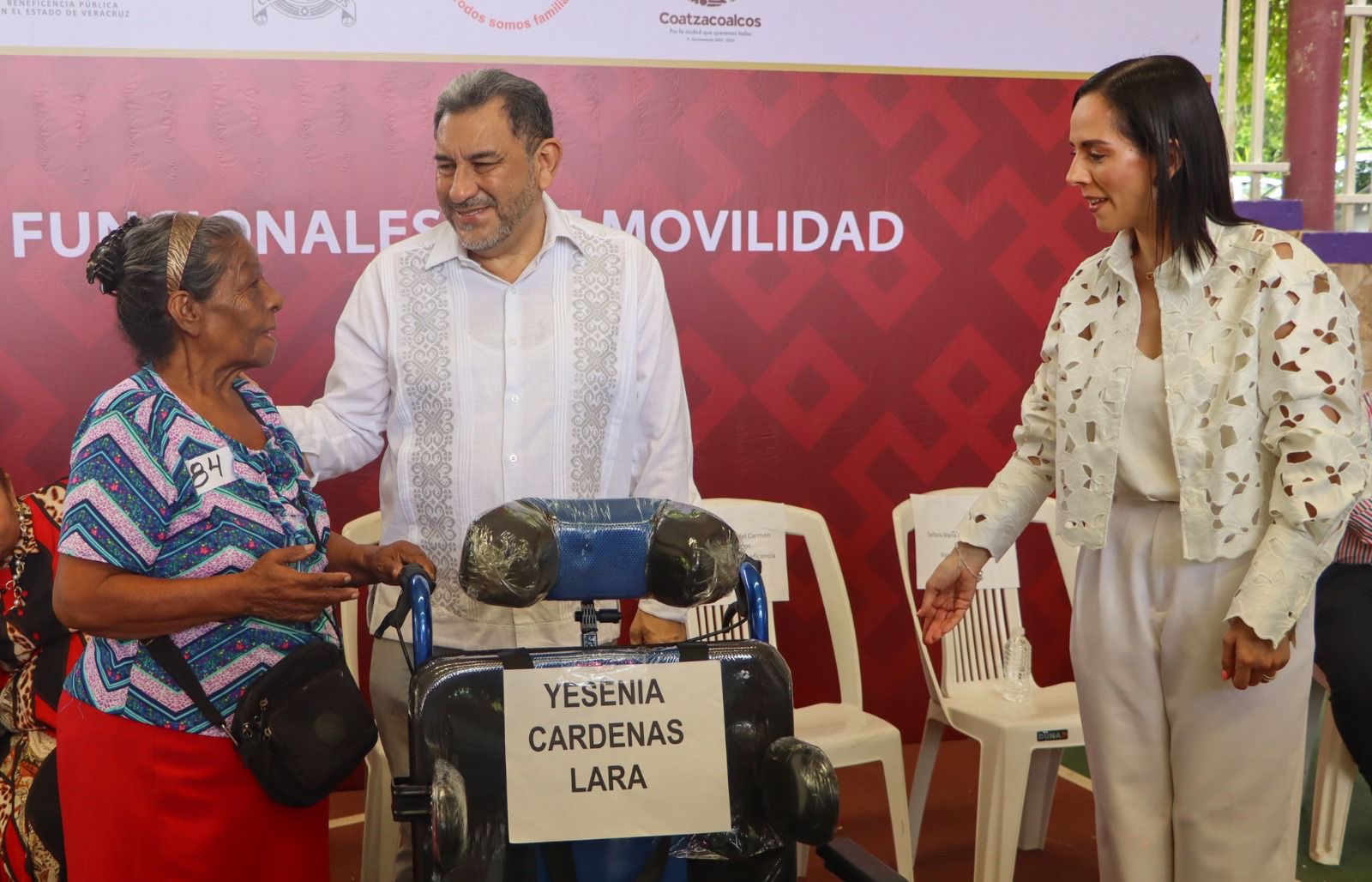 En un esfuerzo por mejorar la calidad de vida de las personas Amado Cruz Malpica, presidente Municipal, Esther Mortera Zetina, presidenta del DIF y María del Carmen Galindo Ramos, titular de la Administración de Patrimonio de la Beneficencia Pública del Estado de Veracruz, llevaron a cabo la entrega de 144 apoyos funcionales y de movilidad a la población de Coatzacoalcos.