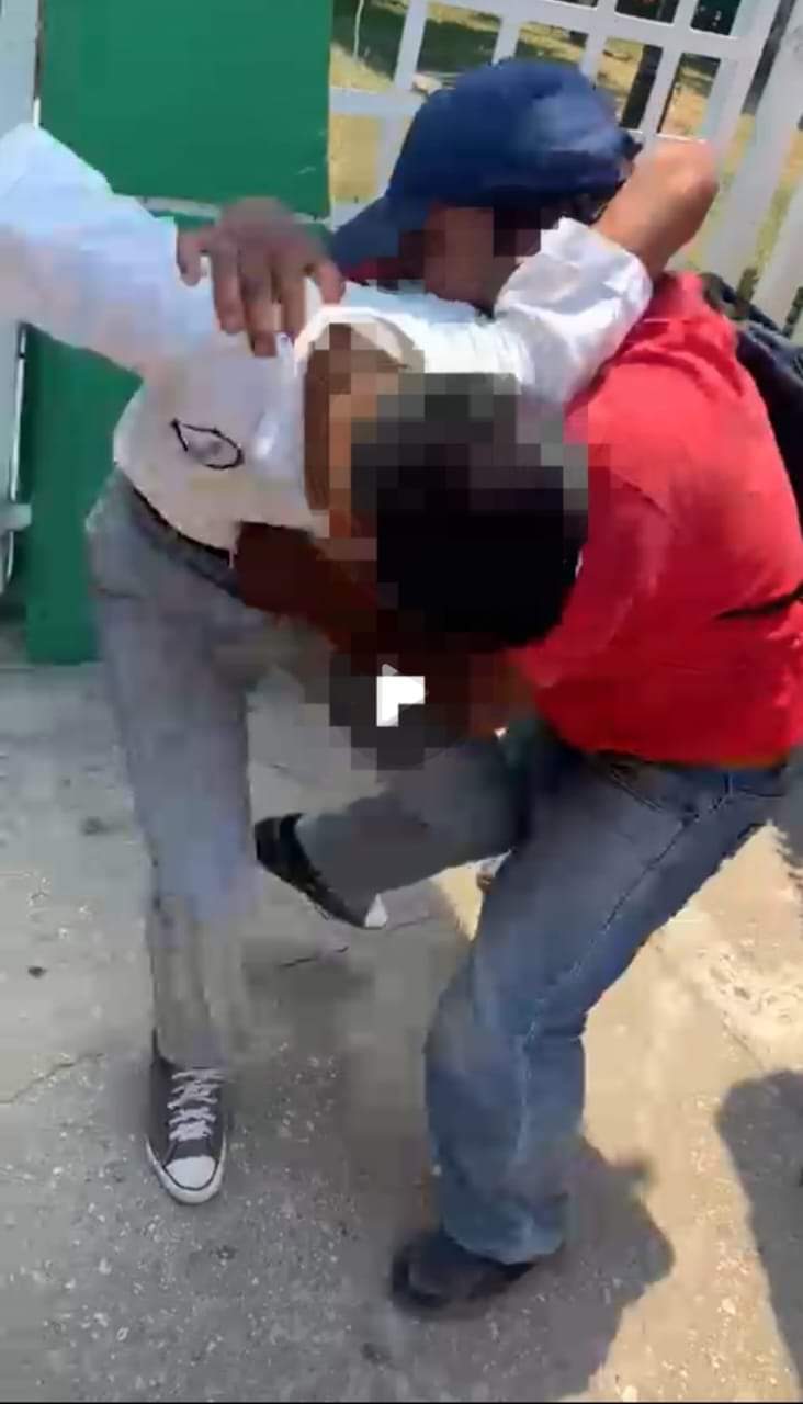 La noche de este martes circuló un video en redes sociales, donde se observa la pelea a golpes entre un adulto en visible estado de ebriedad y un estudiante de la secundaria general 1 Sección 22 en Agua Dulce, hecho que ocurrió frente a la entrada principal del plantel.