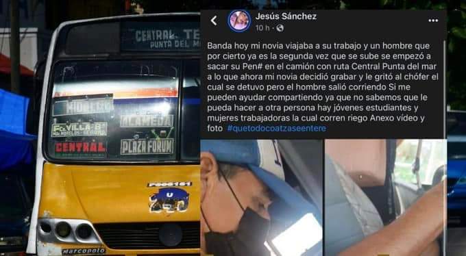 “Ya es la segunda vez que se sube se empezó a sacar su pene en el camión con ruta Central Punta del Mar, a lo que ahora mi novia decidió grabar y le gritó al chófer el cual se detuvo, pero el hombre salió corriente”, explicó Jesús.