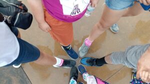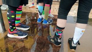 El evento consistió en un circuito de 1,300 metros realizado en comunidad, donde el requisito principal fue el uso de calcetas disparejas. Este gesto no es casual, ya que busca representar la forma de los cromosomas que dan origen a la trisomía 21.