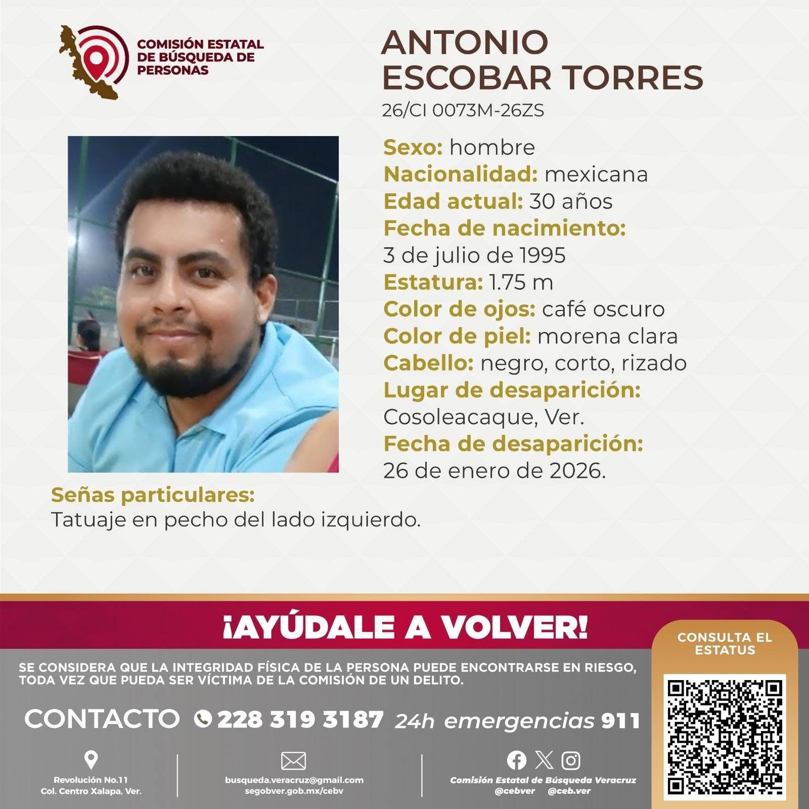 A diferencia de los dos primeros casos, por quienes se emitieron fichas oficiales de búsqueda y localización, fue hasta la madrugada de este sábado 31 de enero cuando se confirmó el hallazgo sin vida de Antonio Escobar Torres.