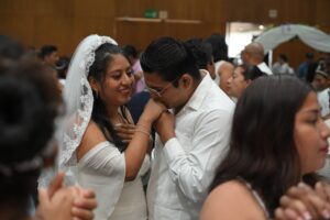 Durante el evento, el presidente municipal, acompañado de la presidenta del Sistema DIF Municipal, Sonia Marie Salvador Goraieb, felicitó a las parejas por dar este paso y destacó que el matrimonio civil no solo consolida un proyecto de vida en común, sino que también brinda estabilidad y seguridad legal para las familias.