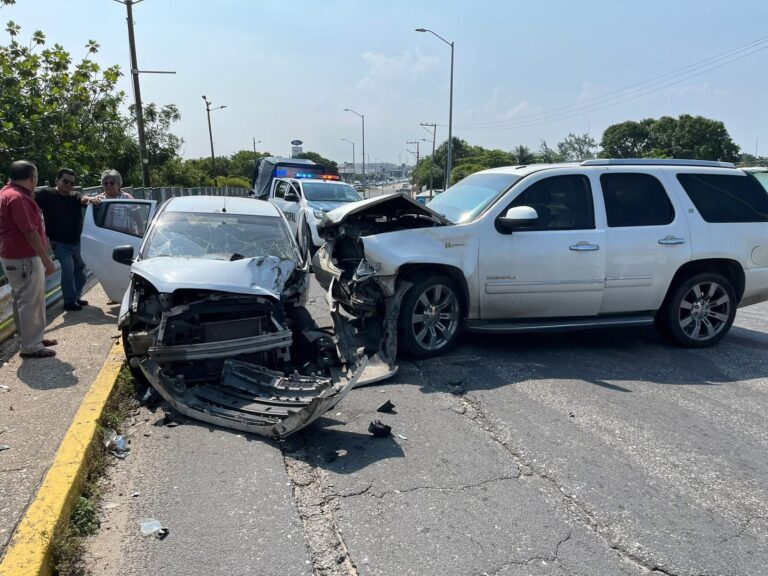 Un fuerte accidente vehicular ocurrido la mañana de este martes sobre la avenida Ignacio Zaragoza, a unos metros del puente Palma Sola y antes del conocido “Reloj de la Ford”, dejó como saldo cuantiosos daños materiales y un hombre lesionado de manera leve.