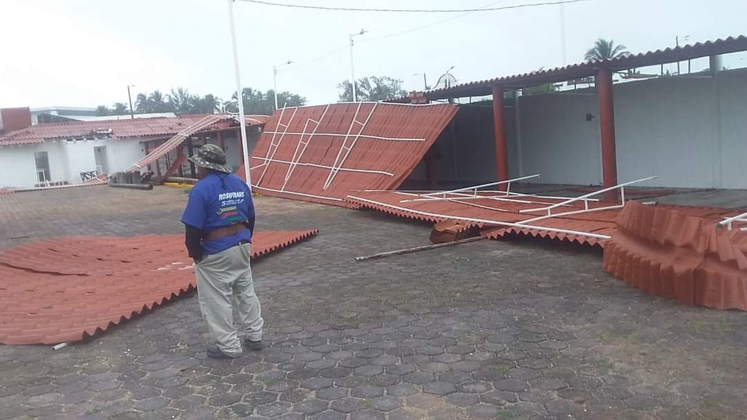 Algunos destrozos provocó el frente frío número 40 en las zonas de rehabilitación de la Expoferia Coatzacoalcos 2023.