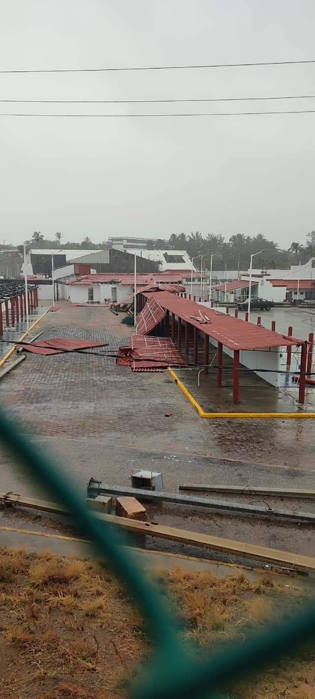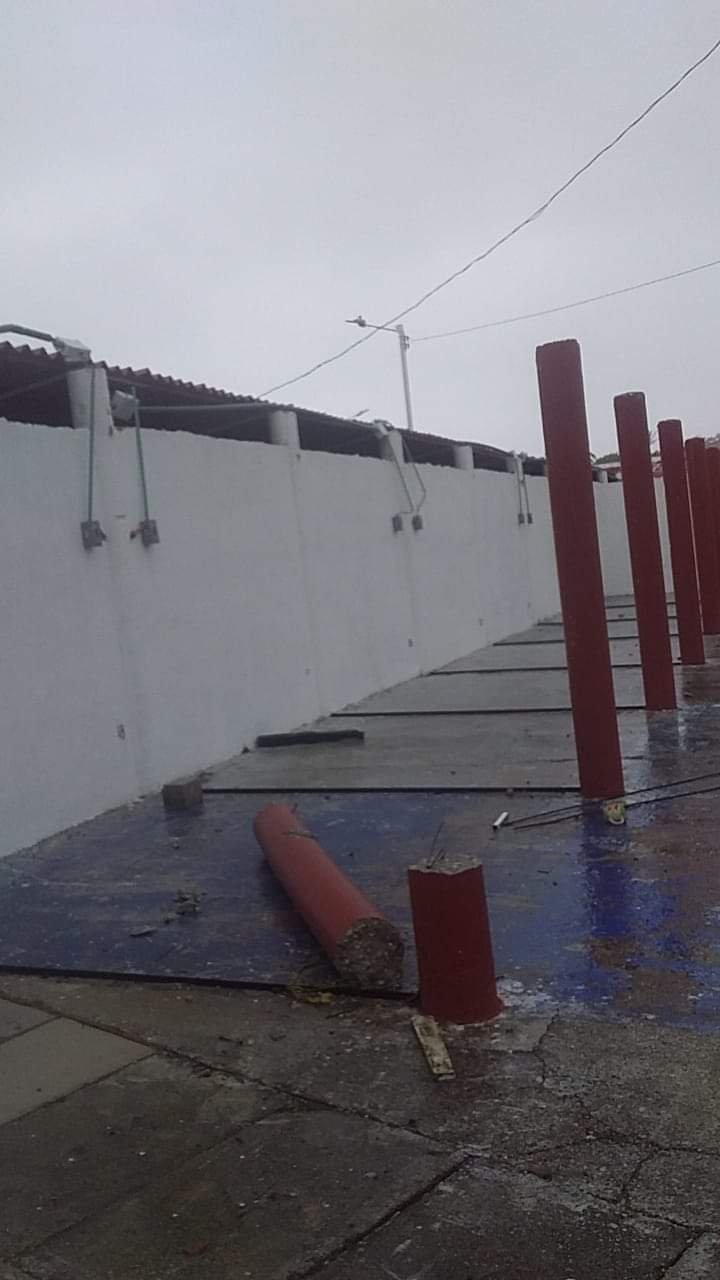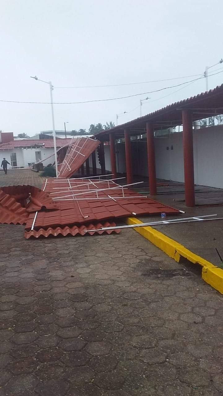 En imágenes compartidas al código Veracruz se observan láminas recién colocadas de algunos techos de los stands que prácticamente se desprendieron por los vientos que llegaron a alcanzar hasta los 80 km por hora.