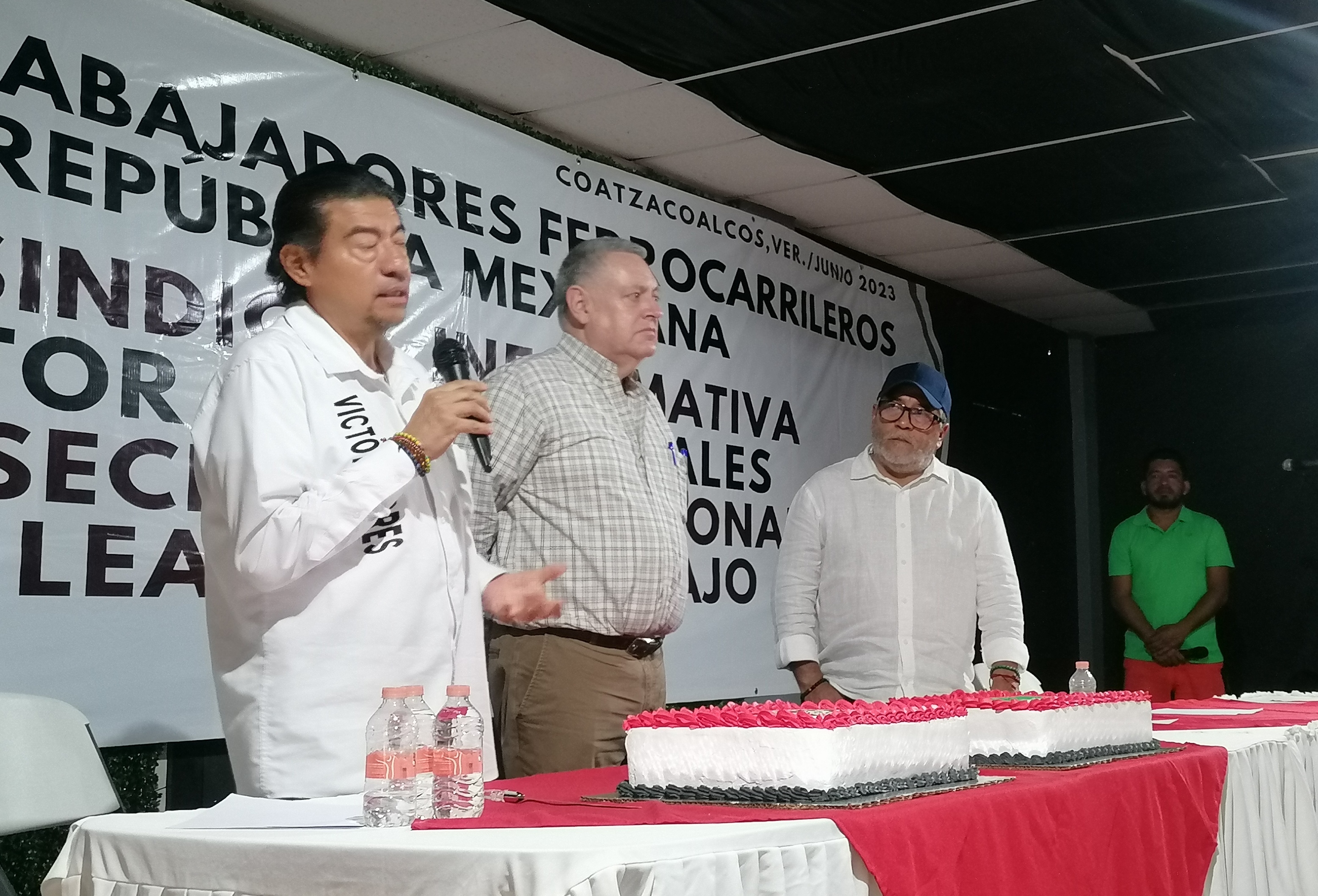 En su visita a Coatzacoalcos junto con Víctor Flores, Secretario Nacional del Sindicato de Trabajadores Ferrocarrileros de la República Mexicana (STFRM), confirmó que la situación laboral de los empleados no corre ningún riesgo.