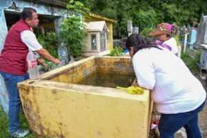 El director de Salud Pública Municipal, Javier Reyes Muñoz, en representación del presidente municipal, destacó que durante la presente administración se ha mantenido una estrategia constante de eliminación de cacharros en panteones y colonias, lo que ha permitido disminuir de manera significativa los casos de dengue, zika y chikungunya.