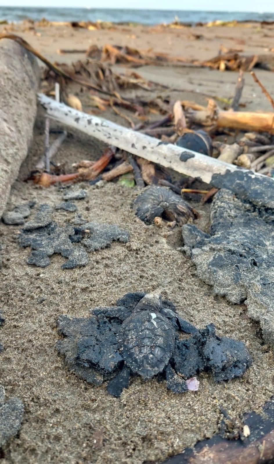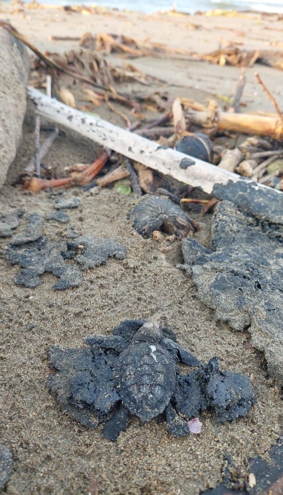 “En este caso estamos viendo su impacto negativo porque está afectando la biodiversidad de nuestra zona costera, nos envía el mar un ser vivo que seguramente emergió de un nido, se dirigió al océano, se atoró en el chapapote y se regresó ya sin vida”, detalló.