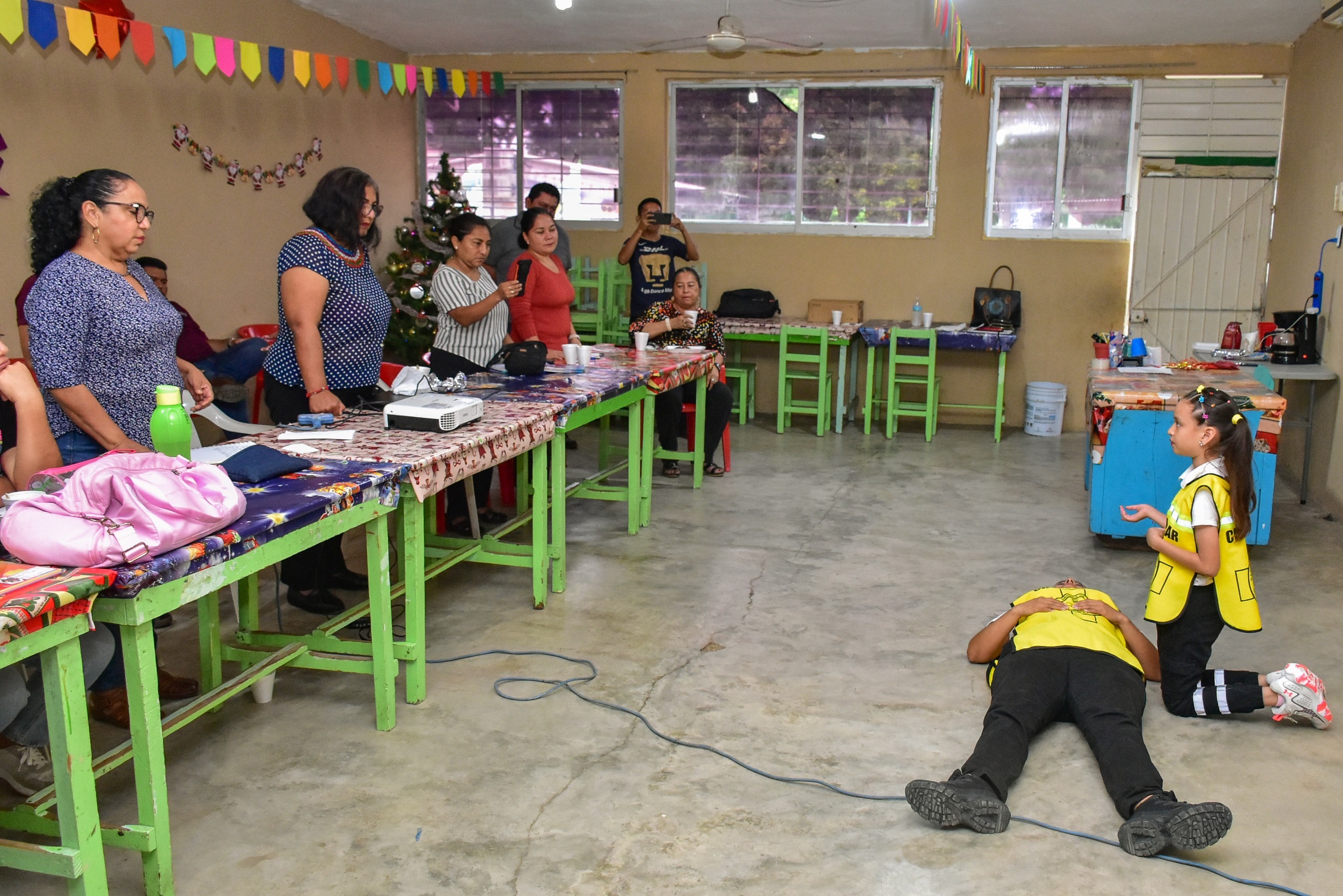 En esta ocasión, la Escuela Primaria Jesús García Corona fue sede de una de las capacitaciones, donde se trataron temas esenciales como: la identificación del estado de conciencia del paciente, aprender a detectar áreas seguras, uso de números de emergencia y la aplicación de la posición de seguridad para el paciente.