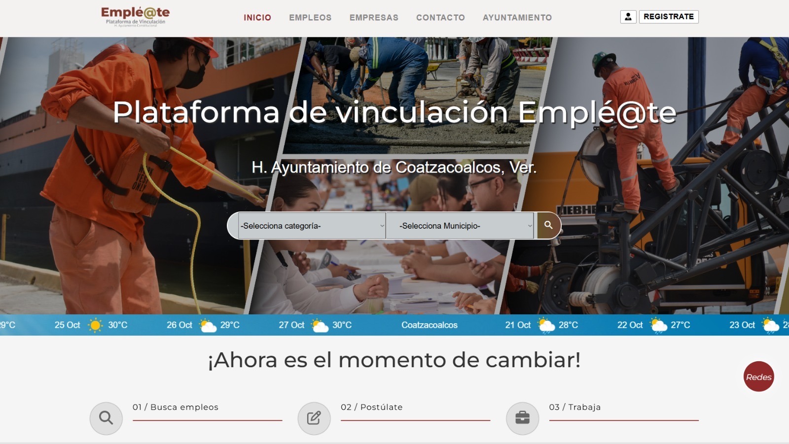 A través del portal institucional coatzacoalcos.gob.mx, en el apartado “Gobierno Digital”, la ciudadanía puede acceder directamente a la página empleate.coatzacoalcos.gob.mx, donde las empresas pueden registrar sus vacantes y las personas interesadas crear su perfil y postularse fácilmente.