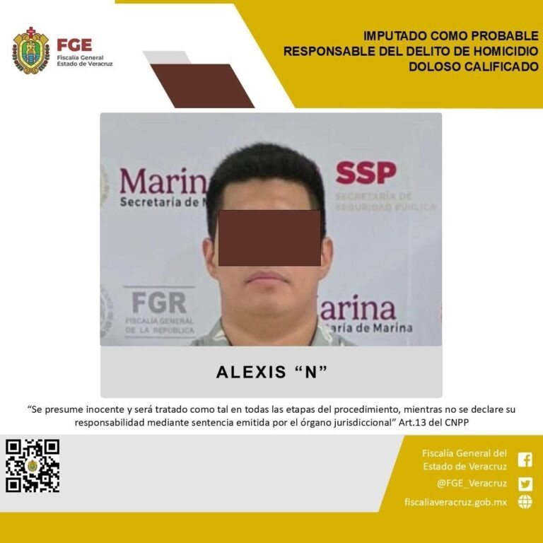 La Fiscalía Regional Coatzacoalcos realizó imputación en contra de contra Alexis “N” como probable responsable del delito de homicidio doloso calificado en agravio de A.M.P.