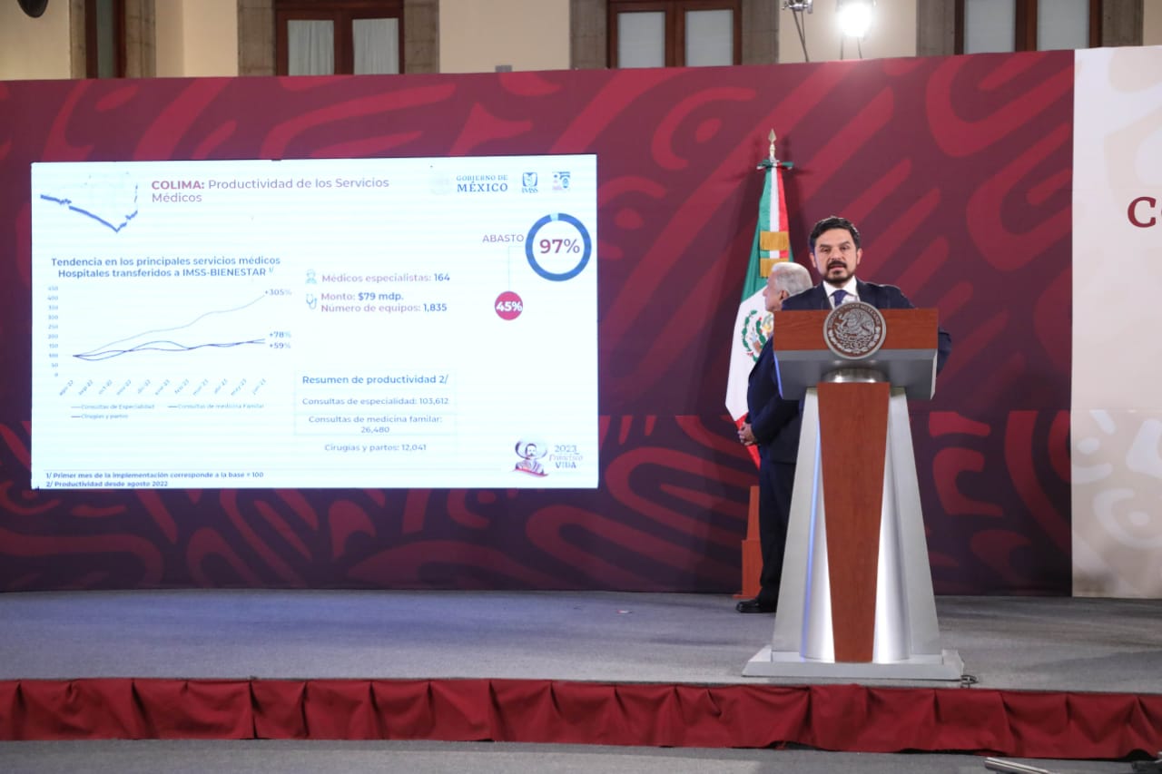 Durante la conferencia de prensa que encabezó el presidente Andrés Manuel López Obrador, en Palacio Nacional, Zoé Robledo señaló que con IMSS-Bienestar, la nueva institución de atención médica para las personas sin seguridad social, se ha logrado tener más médicos, insumos, equipo funcional, incrementar la productividad, el número de consultas y cirugías.