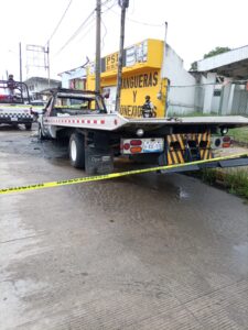 En la puerta del copiloto se alcanza a visualizar la razón social Grúas Coatzacoalcos, con placas de circulación 8-XDC-57A estado de Veracruz.