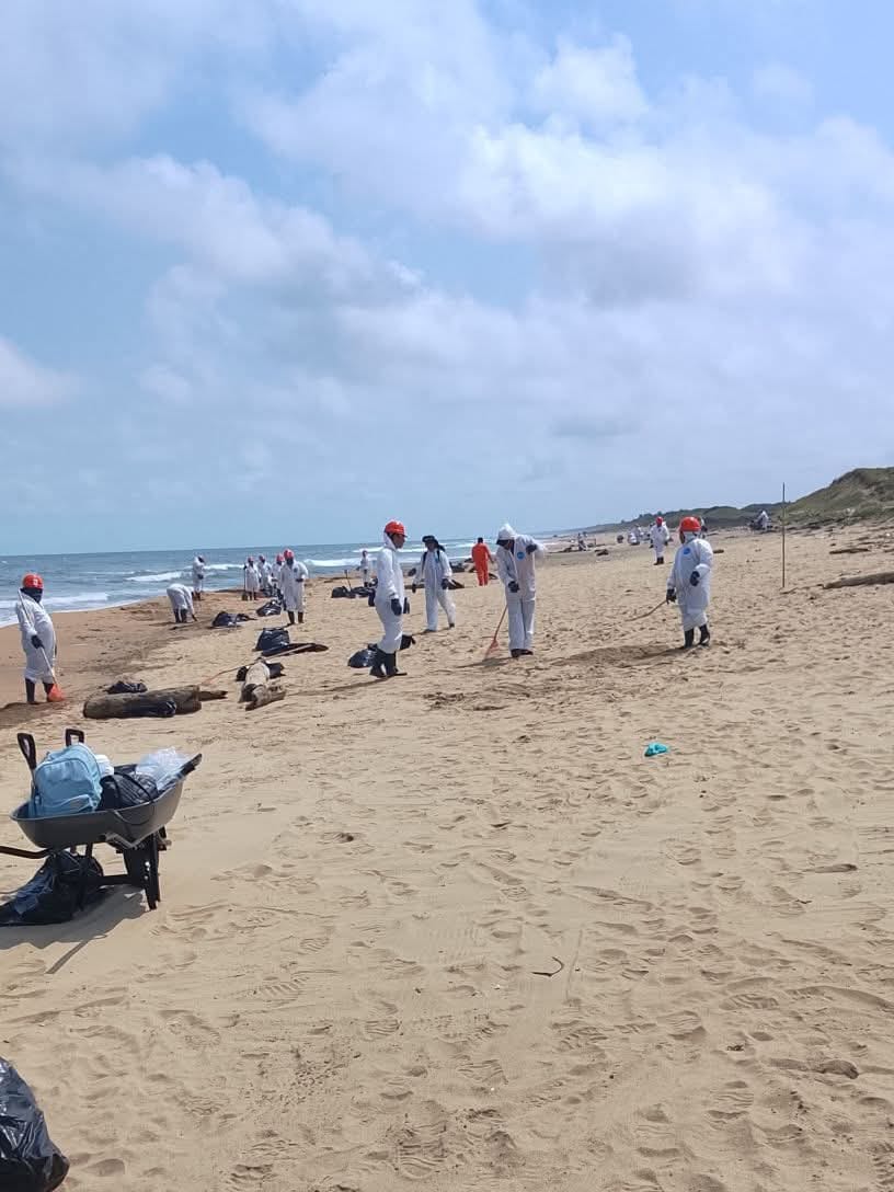 Inicia limpieza emergente en playas de Villa Allende y Rabón Grande por presencia de hidrocarburo