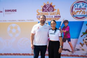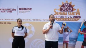 Con el objetivo de fomentar la convivencia familiar y la sana competencia, el presidente de Coatzacoalcos, Pedro Miguel Rosaldo García, junto a la directora Municipal del Deporte, Tania Eunice Pérez Sánchez, dieron el arranque a la Semana Santa Deportiva 2026, que contempla torneos de voleibol, futbol y beisbol de playa.