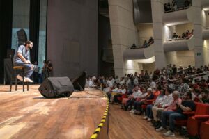 La charla, realizada en el Centro de Convenciones, convocó a jóvenes y familias interesados en reflexionar sobre crecimiento personal, motivación y la importancia de encontrar inspiración en la vida cotidiana.