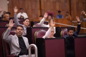 En cumplimiento de lo dispuesto en los artículos 25 del Reglamento para el Gobierno Interior y 19 de la Ley Orgánica, ambos ordenamientos del Poder Legislativo del estado, en Sesión Extraordinaria, el Pleno de la LXVII Legislatura avaló con 31 votos el acuerdo de la Junta de Coordinación Política, por el cual las diputadas Naomi Edith Gómez Santos y Estefanía Bastida Cuevas y el legislador Alejandro Porras Marín fueron elegidas y elegido para integrar la Mesa Directiva que funcionará durante el segundo año de labores.