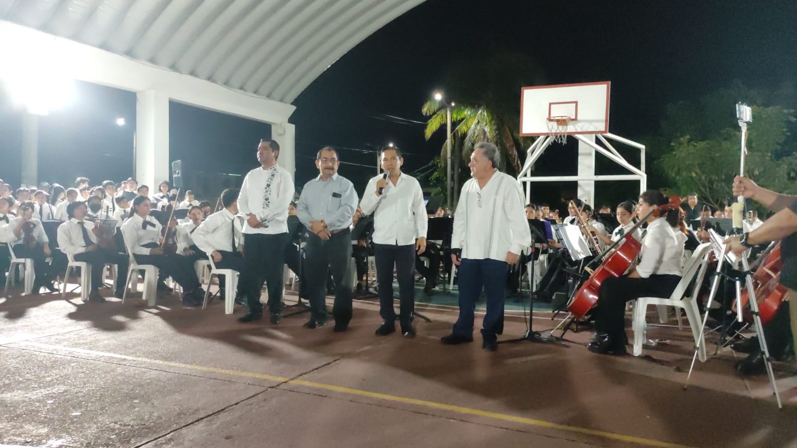 Ayer jueves por la noche en el domo del parque Benito Juárez García se llevó a cabo el concierto de presentación para invitar a los jóvenes interesados a ser parte de la Orquesta Sinfónica de villa Allende donde el agente municipal, Alejandro Trujillo Hernández dio el arranque e hizo extensiva la invitación.