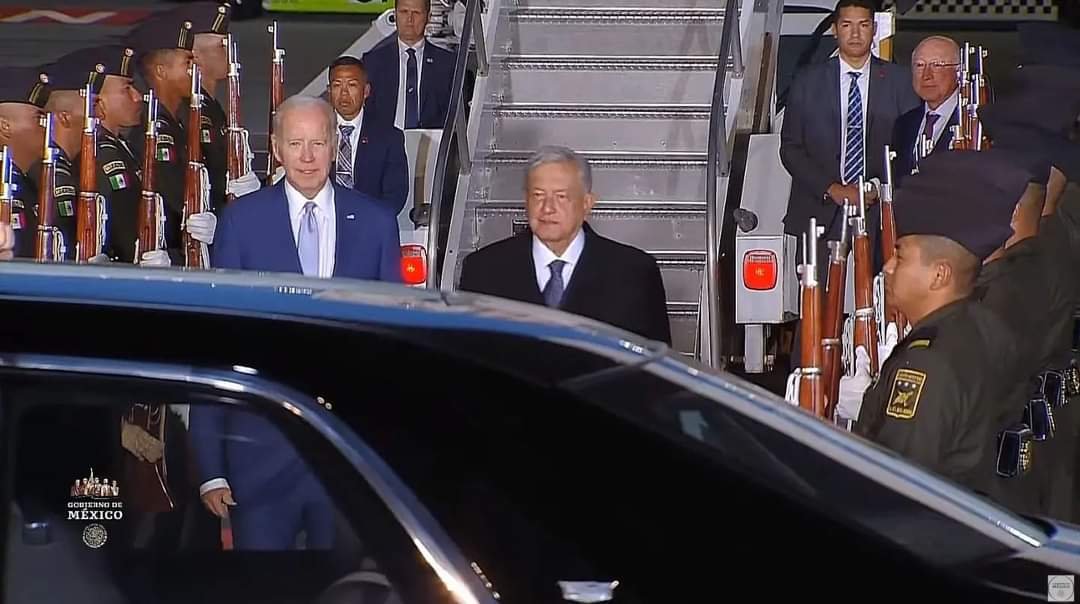Biden y el presidente mexicano se estrecharon la mano a pie de pista, conversaron unos minutos y posteriormente abordaron juntos la Bestia, el vehículo blindado que traslada al presidente estadounidense, para dirigirse hacia el hotel donde se hospedará el mandatario, en Polanco.