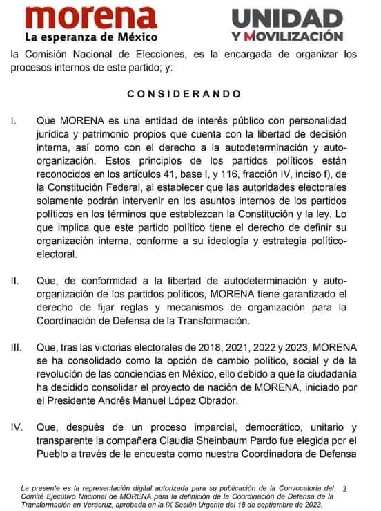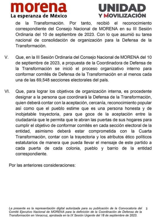 Convocatoria al proceso interno para la designación de la Coordinación de Comités de Defensa de la Transformación en el Veracruz