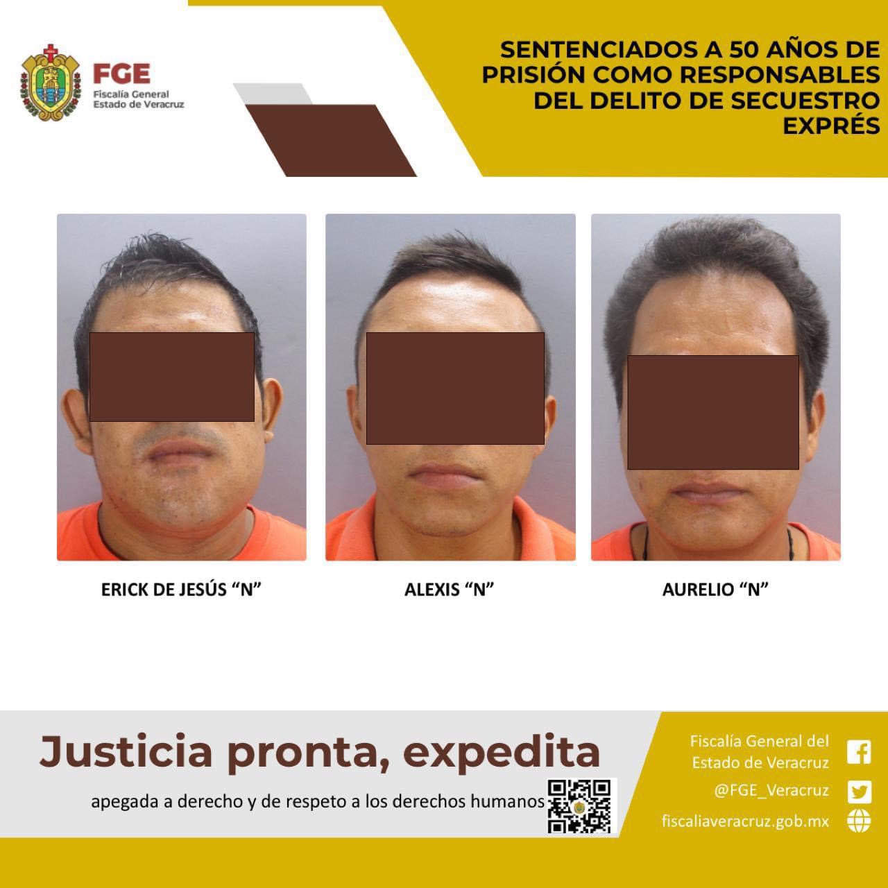 La Fiscalía Regional Coatzacoalcos logró sentencia condenatoria de 50 años de prisión en contra de Aurelio “N”, Alexis “N” y Erick de Jesús “N” como responsables del delito de secuestro exprés.