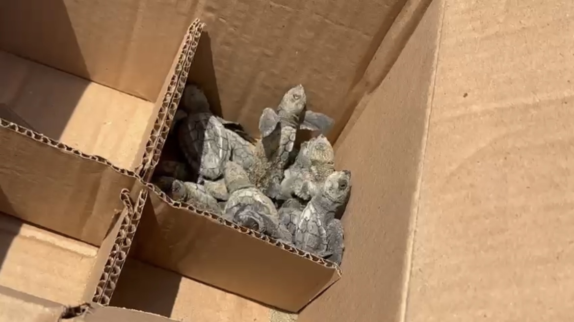 Las aguas del Golfo de México recibieron a 41 tortugas lora que nacieron en las playas de Coatzacoalcos, a la altura de la colonia María de la Piedad.