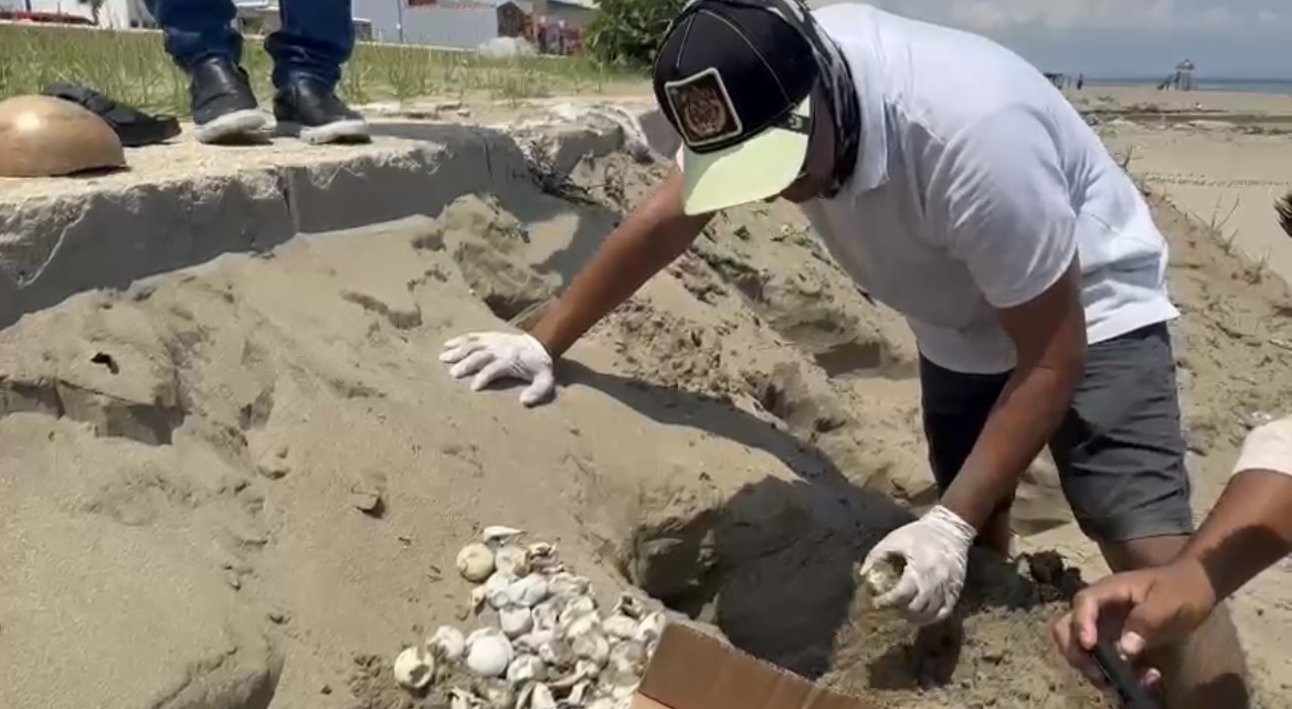 Este es el primer nido que eclosiona durante la temporada, mismo que fue exhumado, dijo Alejandro Cepeda, coordinador del parque  “Eco-Parque” y miembro de la asociación “Fauna Silvestre”.