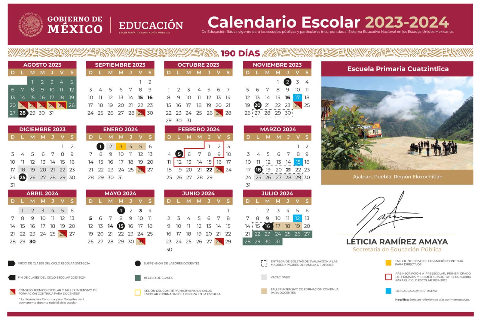 El secretario de Educación, Zenyazen Escobar García, compartió en su cuenta de Threads el Calendario Escolar 2023-2024 que difunde la Secretaría de Educación Pública, el cual considera 190 días de clases.