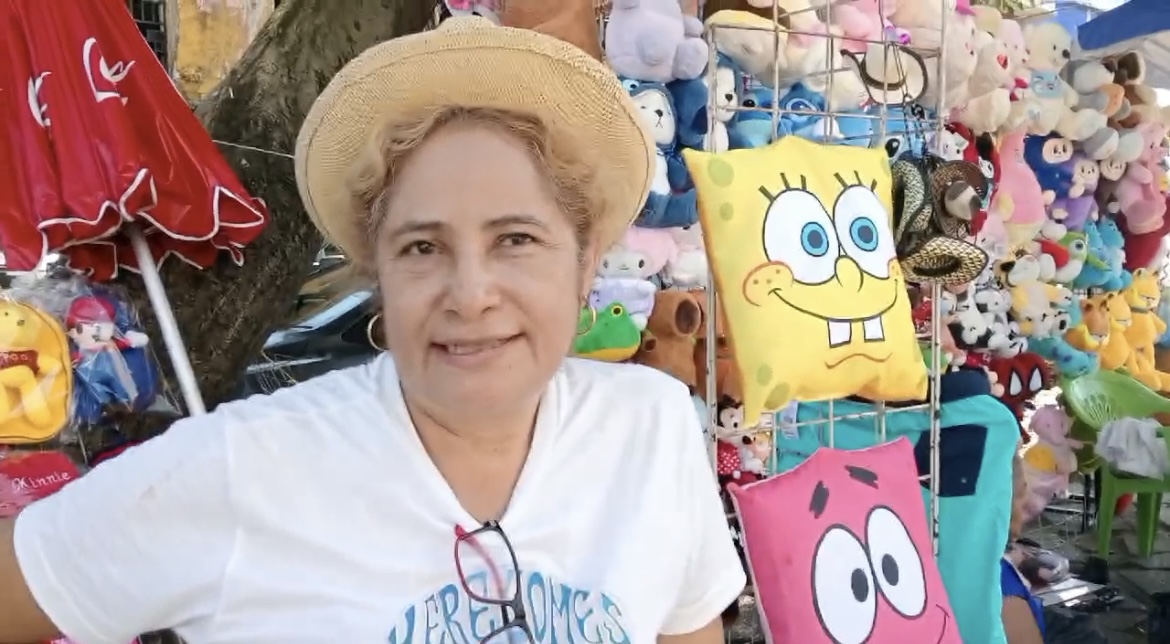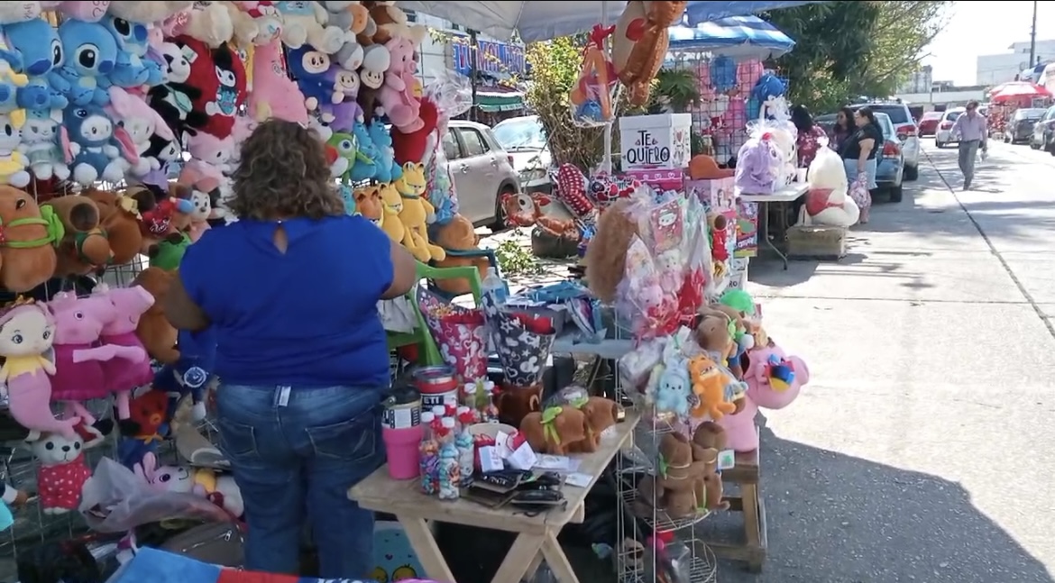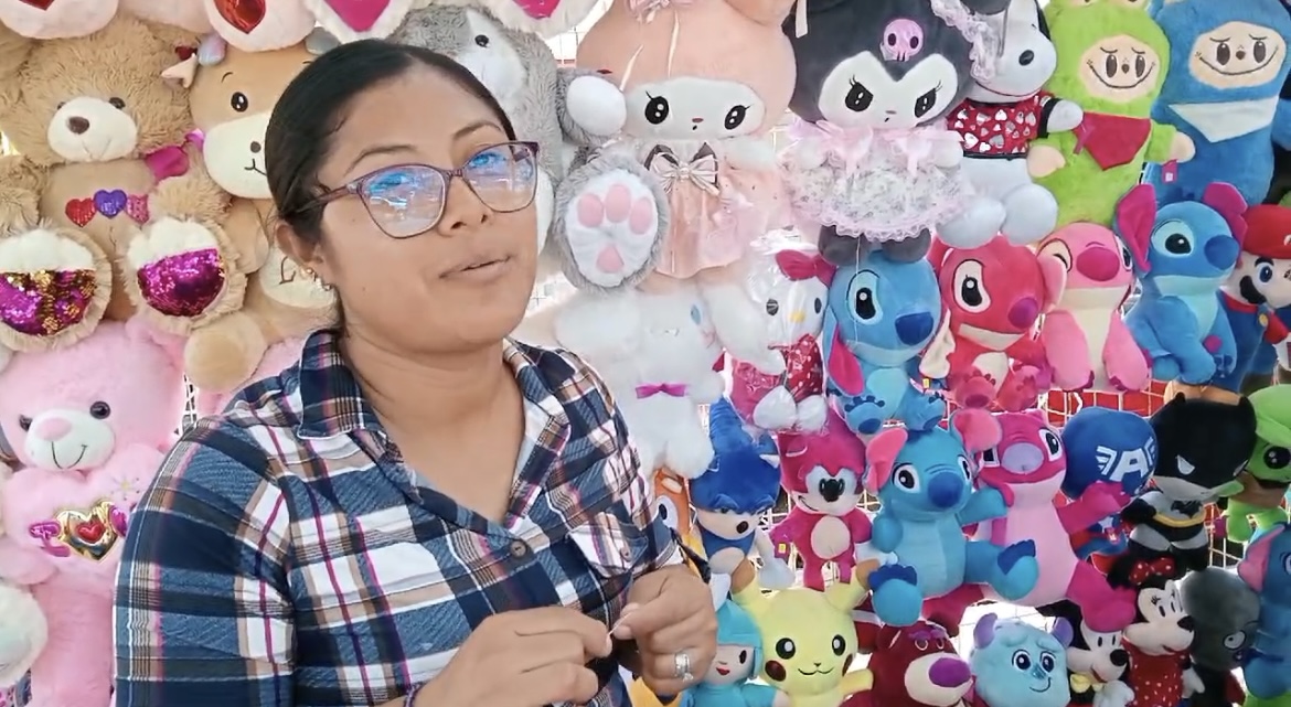 “Tenemos de todo un poco, estamos sacando productos baratos para que se venda, tenemos almohadas, llaveros, flores, gorras, dulces, osos de peluche”, explicó.
